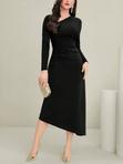 Women Elegant Navy Blue Suit Dress