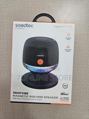 The Porodo Soundtec Snap Vibe Magnetic RGB Mini Speaker is a product that skillfully combines excellent sound and captivating light effects, all within a compact and portable design