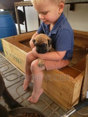 Boerboel and Cane Corso mixed breed puppies. Males and females. They will be ready to go first week of April. They will have vaccinations and will make great guard dogs. As of this listing there are 5 available. Come now and choose your puppy with a small down payment and I will hold it for you until they are old enough to go. Mother is Cane Corso and is fed only imported dog food. Located in Sunshine Village CMC. It is best if you can speak english when you call.