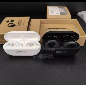 The unique Ambie Open-Ear Clip Earbuds. They offer a comfortable, secure fit that doesn't block your ear canal, perfect for staying aware of your surroundings. Get clear sound and seamless Bluetooth connection. Available in Black and White. Compatible with all devices.