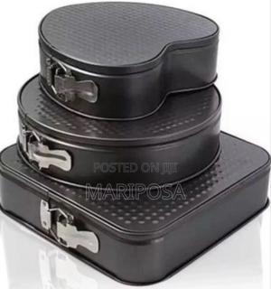3 Pcs SHAPPE CAKE MOULD ባለ 3 የተለያዬ የኬክ ቅርፅ ማውጫ መጋገሪያ በአራት ማዕዘን, በክብ እና በልብ ቅርፅ 24cm, 26cm and 28cm ስፋት ያላቸው