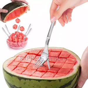 የሀብሃብ መቁረጪያ ሹካ ሀብሃብ በአራት ማዕዘን ቆራርጠው ለመመገብ የሚፈለግ በሲልቨር ቀለም ቀላል እና ላጠቃቀም ምቹ 850