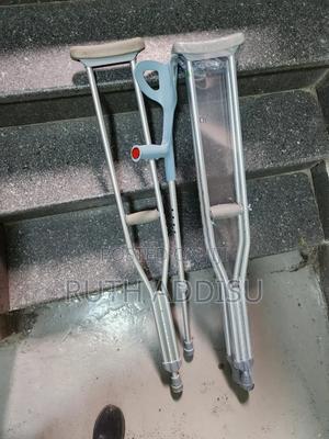 የብብት እና የክንድ ክራንች elbow Nd axillary crutches #axillary_crutches #elbow_crutches #almunium_crutchea #Free_and fast_delivery #stainless_crutches #crutches_in_Ethiopia #crutches_in_addis_ababa Axilla or underarm crutches: They should be positioned with 2-3 fingers of distance between the axilla and the axilla pad with the elbow flexed between 20-30 degrees.[1] The design includes an axilla bar, a handpiece and double uprights joined distally by a single leg. They are adjustable in height; both the overall height and handgrip height can be adjusted (adjustable approximately 48 to 60 inches / 122 to 153 cm).